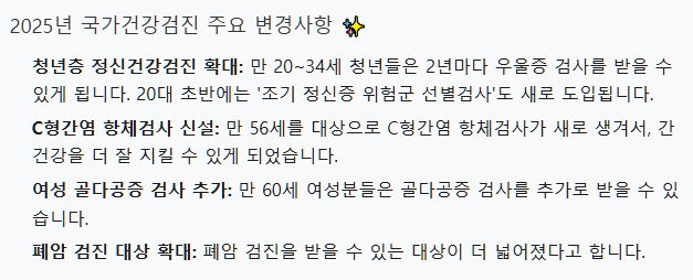 적절한 시기에 국가건강검진을 받고, 결과를 잘 활용해 건강한 삶을 유지할 수 있기를 진심으로 바랍니다. 이 정보를 통해 더 건강하고 활기찬 내일을 맞이하시길 응원합니다!