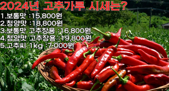 고추는 기후 변화에 매우 민감한 작물이기 때문에, 가뭄, 폭염, 장마, 태풍과 같은 자연재해가 발생하면 생산량이 크게 줄어들어 고춧가루 1근의 가격이 급등할 수 있습니다. (올해의 경우 폭우의 영향으로 고춧가루의 가격 영향이 조금 있을 듯합니다)