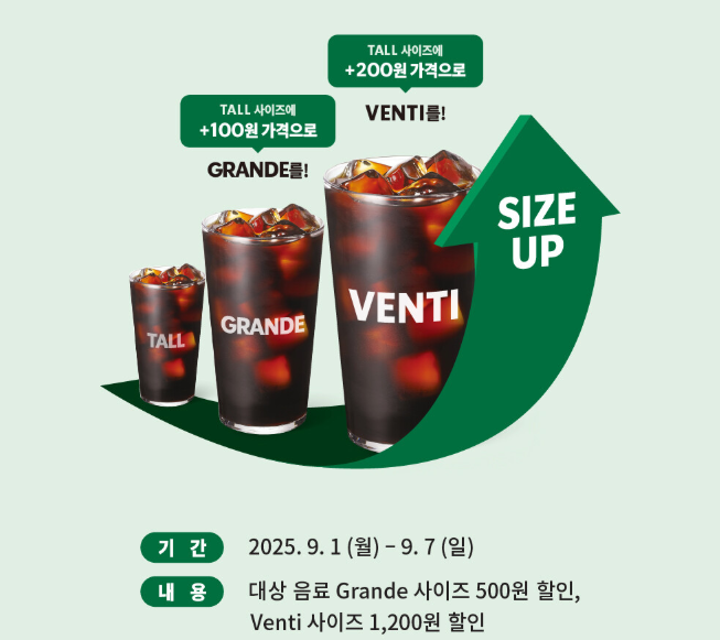 9월 1일 ~ 7일: 대표 메뉴 그란데/벤티 사이즈 할인