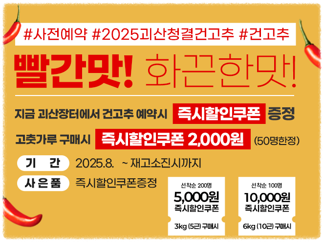 시중보다 훨씬 저렴한 가격으로 고품질의 괴산 고추를 만나볼 수 있으니, 이 기회를 놓치지 마세요!