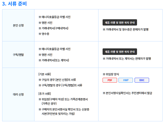 3. 으뜸효율가전 환급 신청 구비 서류 및 준비물